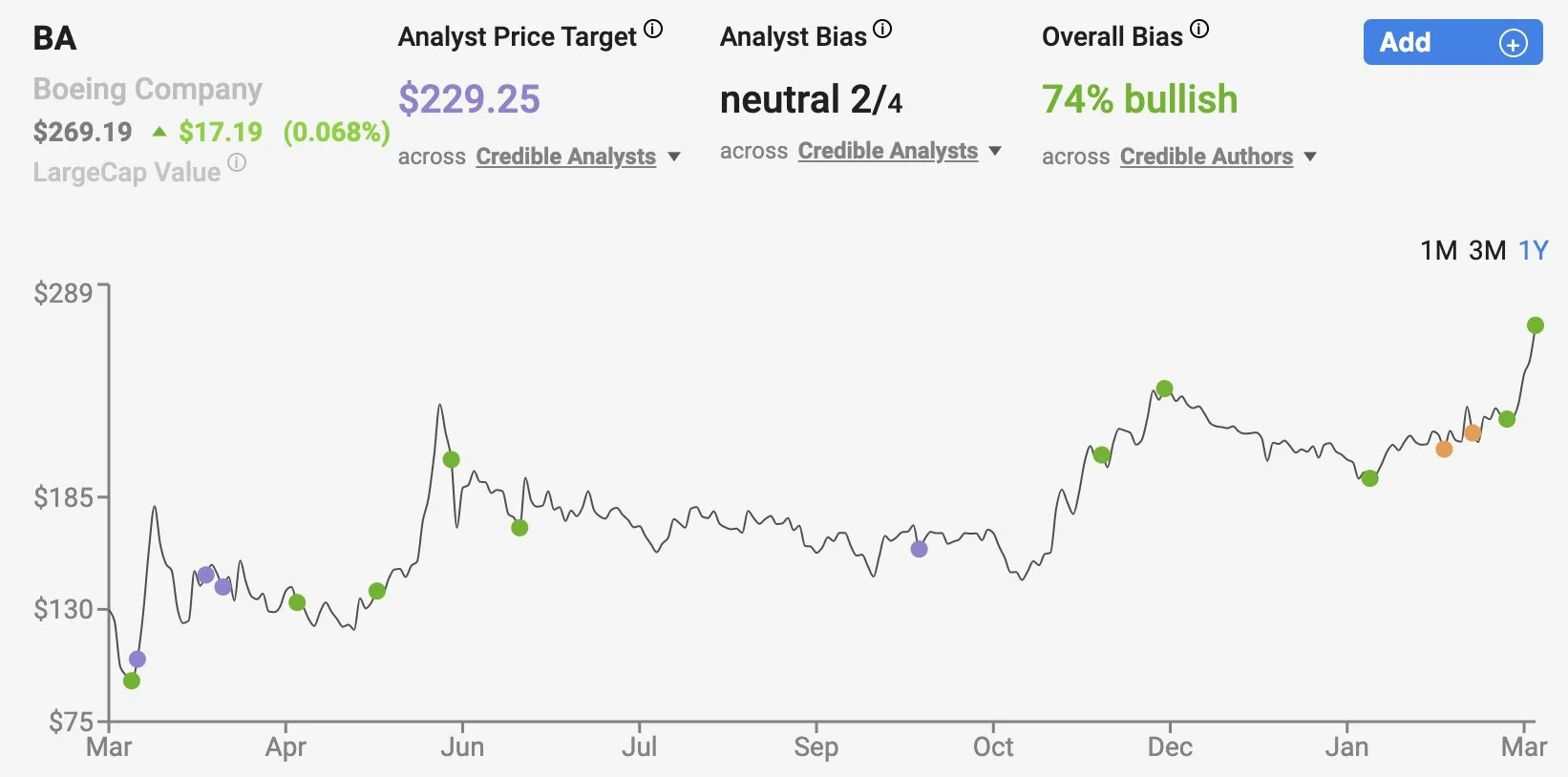 Members of the analyst community appear to have more conviction about their bullish outlooks. Morgan Stanley’s Kristine Liwag recently raised her price target on the stock from $230 to $250/share. This raise came after Liwag’s late January upgrade of Boeing, from underweight to overweight, when she said her price target from $165 to $230, saying that Boeing is “a COVID-19 recovery play with upside.”